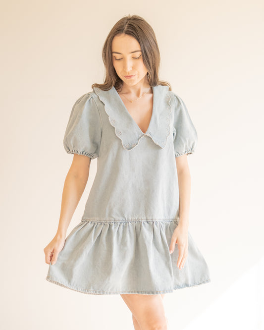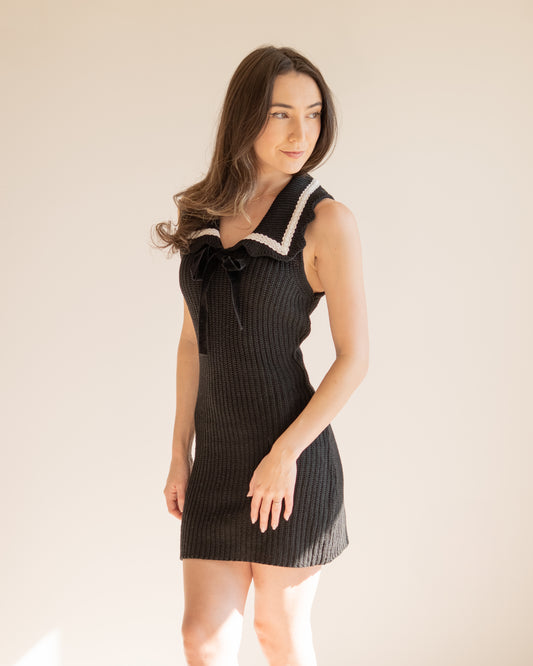 Clara Scalloped Collar Lace Trim Sweater Mini Dress