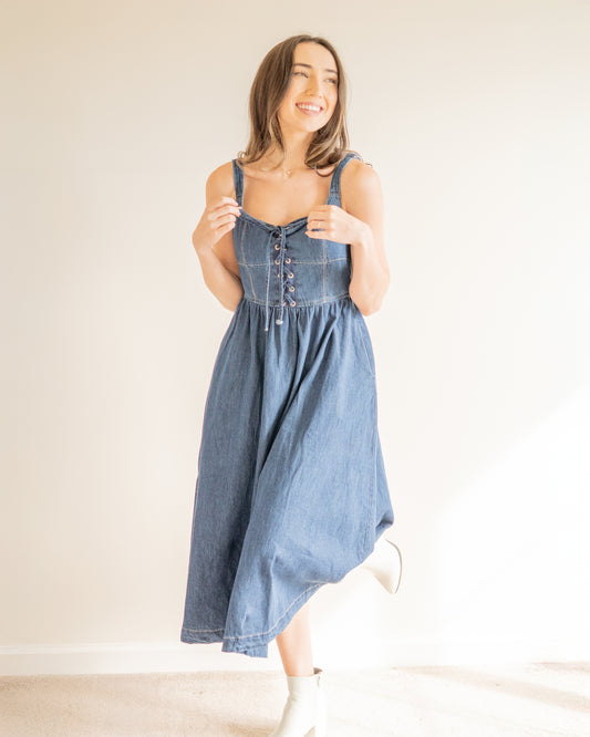 Sunbeam Serenade Lace-Up Sleeveless Denim Midi Dress