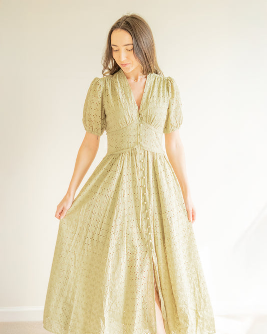 "The Meadow Song" Cotton Eyelet Button Down Dress