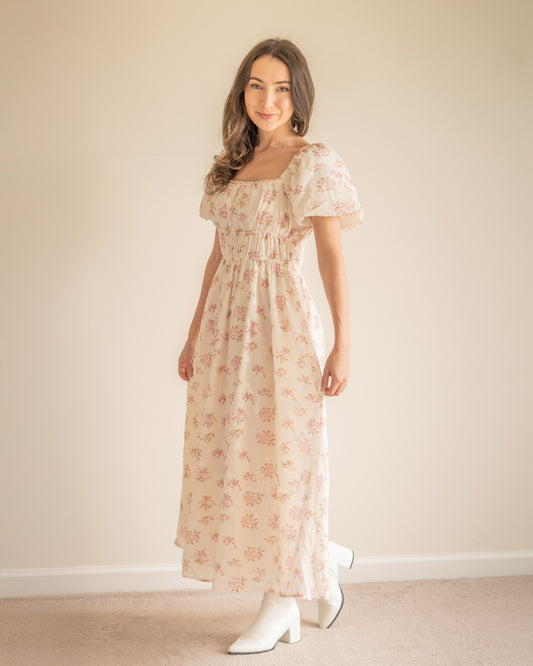 Gwen Cap Sleeve Midi Dress in Buttercream