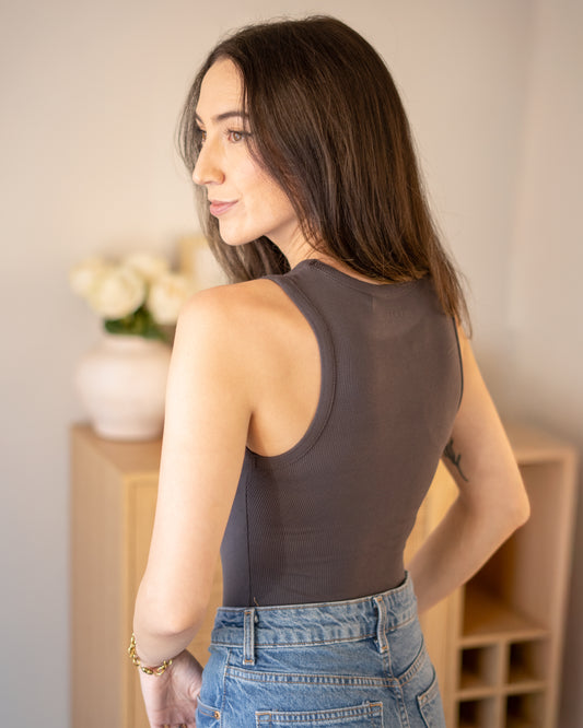 Alexandra Round Neck Sleeveless Bodysuit in Dark Charcoal